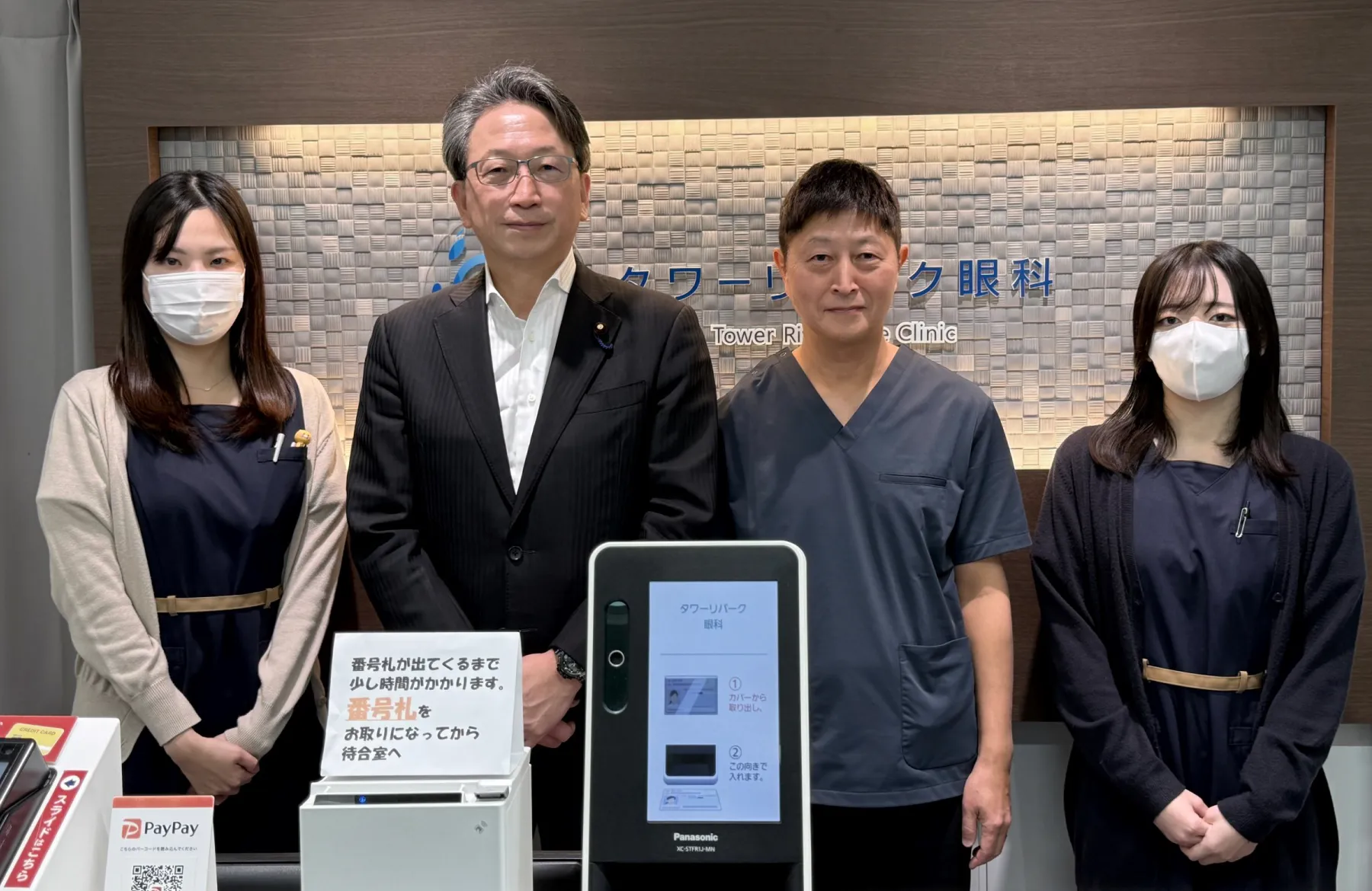デジタル大臣の平将明氏が当院を視察されました。マイナンバーカードのスマートフォン搭載開始に合わせ、マイナ保険証対応やオンライン資格確認など、当院の医療DXの取り組みについてご説明し、地域医療におけるデジタル活用の現場をご覧いただきました。